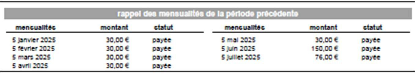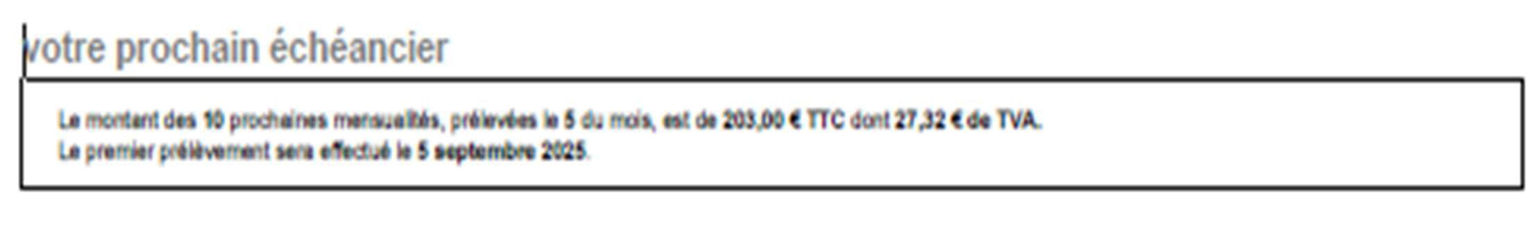 Seulement pour les contrats mensualisés apparaît votre prochain échéancier